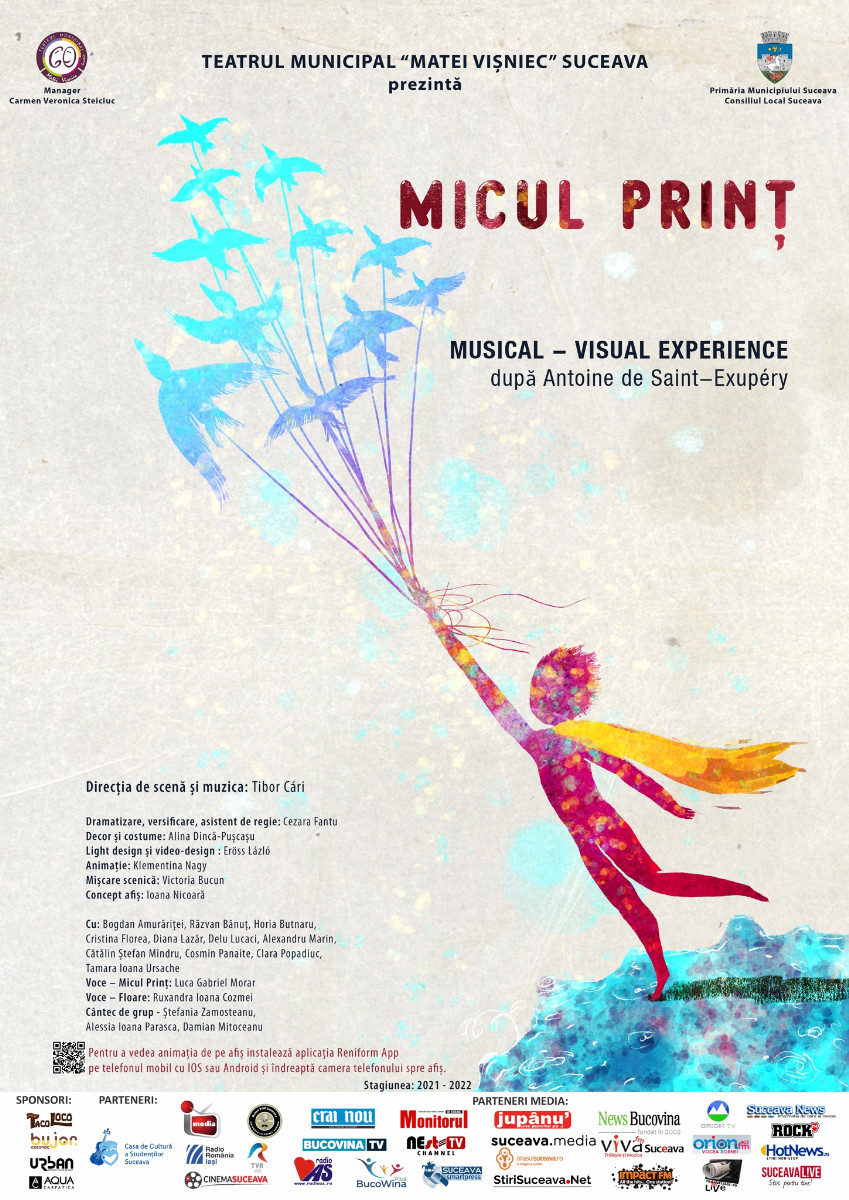 O poveste extraordinară, al cărui protagonist este un simbol al purității, al inocenței și al bucuriei fără limite, spectacolul Micul Prinț, este realizat de Tibor Cári, compozitor și pianist apreciat în mediul cultural din România. Laureat al premiilor UNITER cu Premiul special pentru muzică de teatru (2013), Tibor Cári va realiza astfel primul său spectacol muzical, pe scena teatrului sucevean, pentru care a ales să lucreze cu o echipă de artiști creativi, cunoscuți și apreciați în mediul cultural: Cezara Fantu, care realizează dramatizarea, versificarea și este și asistent de regie, Alina Dincă Pușcașu – scenografie, Victoria Bucun – mișcare scenică, Eröss László – light design și visual design, Nagy Klementina – animații.
